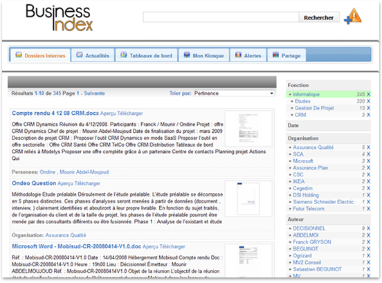 Permettre une recherche par mot clé, croisée avec des axes d’analyse métiers